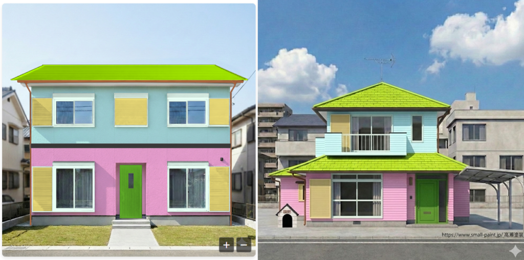 下のリンクからGeminiを開き、ご自宅の写真と一緒にテキストを貼り付けて送信すると、選んだ色でご自宅を塗り替えたリアルな画像を作ってくれます。